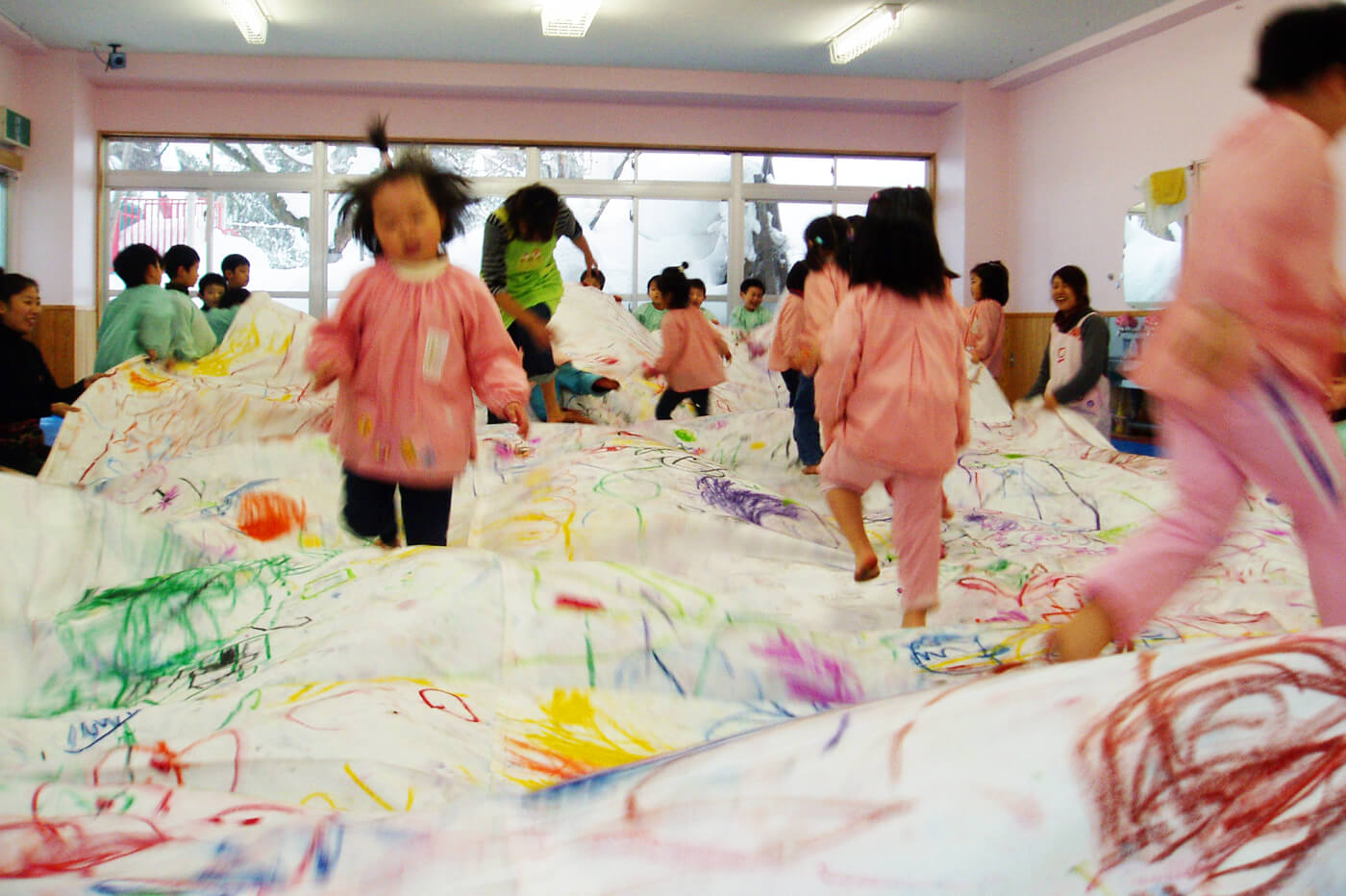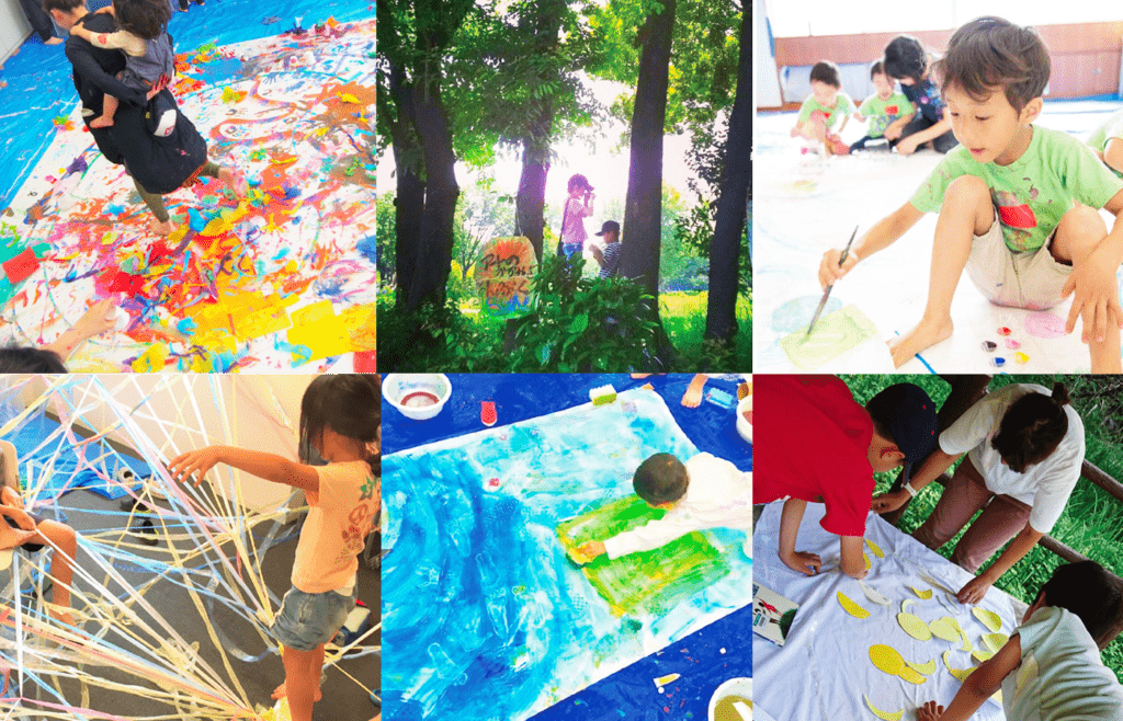 教室の子どもたちの目は、キラキラしています。それは各教室のセラピストたちが、子どもたちが「楽しい!!」と思うようなプログラムを毎回考えて提供しているからです。子どもたちは、いろいろな画材に触れ、五感を存分に使って自己表現をすることができます。そしてそのプロセスをセラピストがまるごとを受け止めています。そのことで子どもたちは、自分を大切な存在だと思うようになり、仲間のことも大切な存在と思うになっていく、そのような環境が用意されているのがこの教室です。