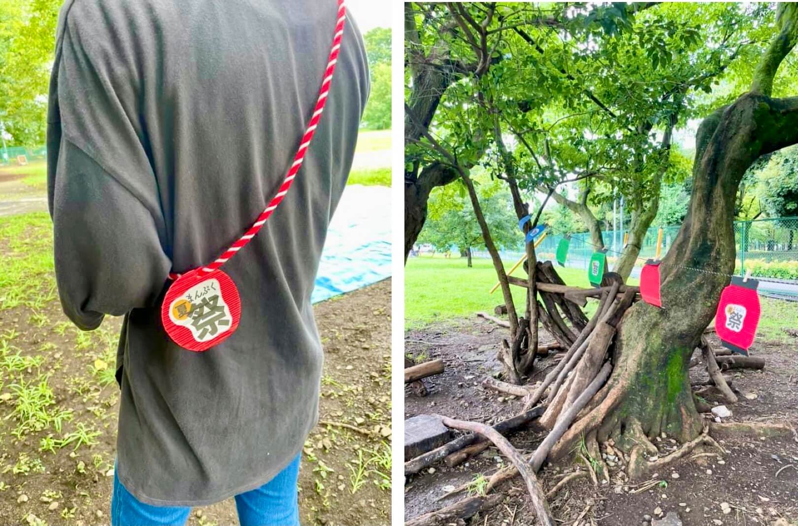 子どもたちと初めて会う卒業生もいたのでみんなで自己紹介したあと、まんぷく祭の参加の証を身につけて、いよいよまんぷく祭開始!