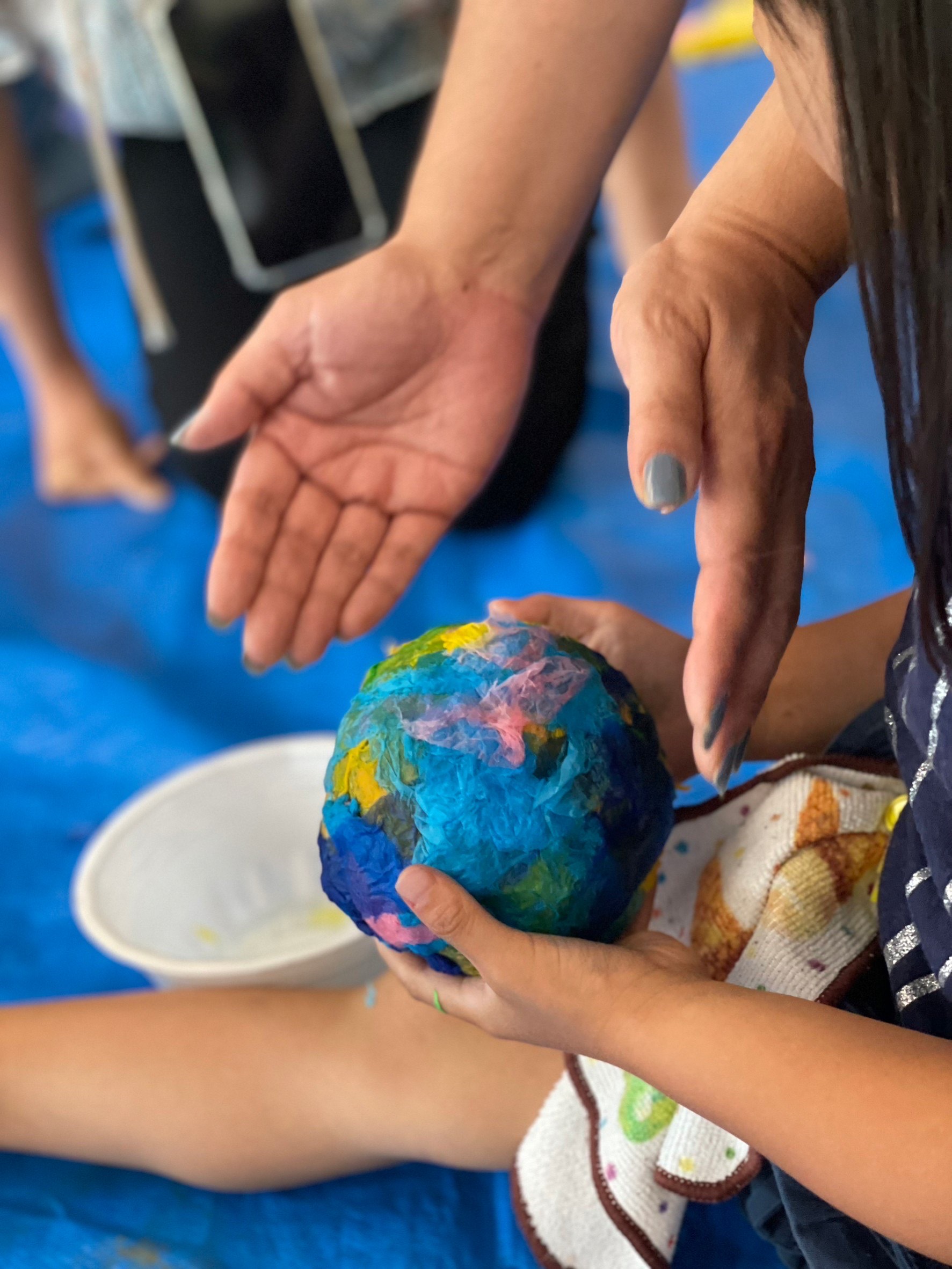 親子で協力してひたすら、大きなボール状にアートしていく姿が印象的でした。お母様がそれを一緒にやり続け「こんなにこの子が根気がある子だと思いませんでした」と新たな一面を発見される姿が見られました。