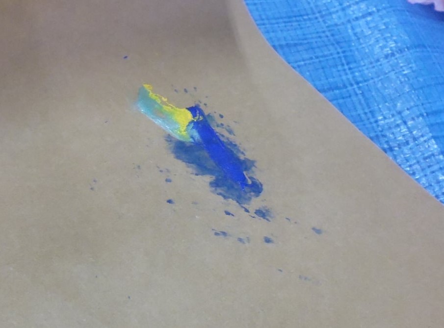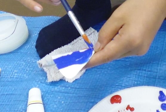 絵の具を裏に塗って、ぺたん。スタンプのように。