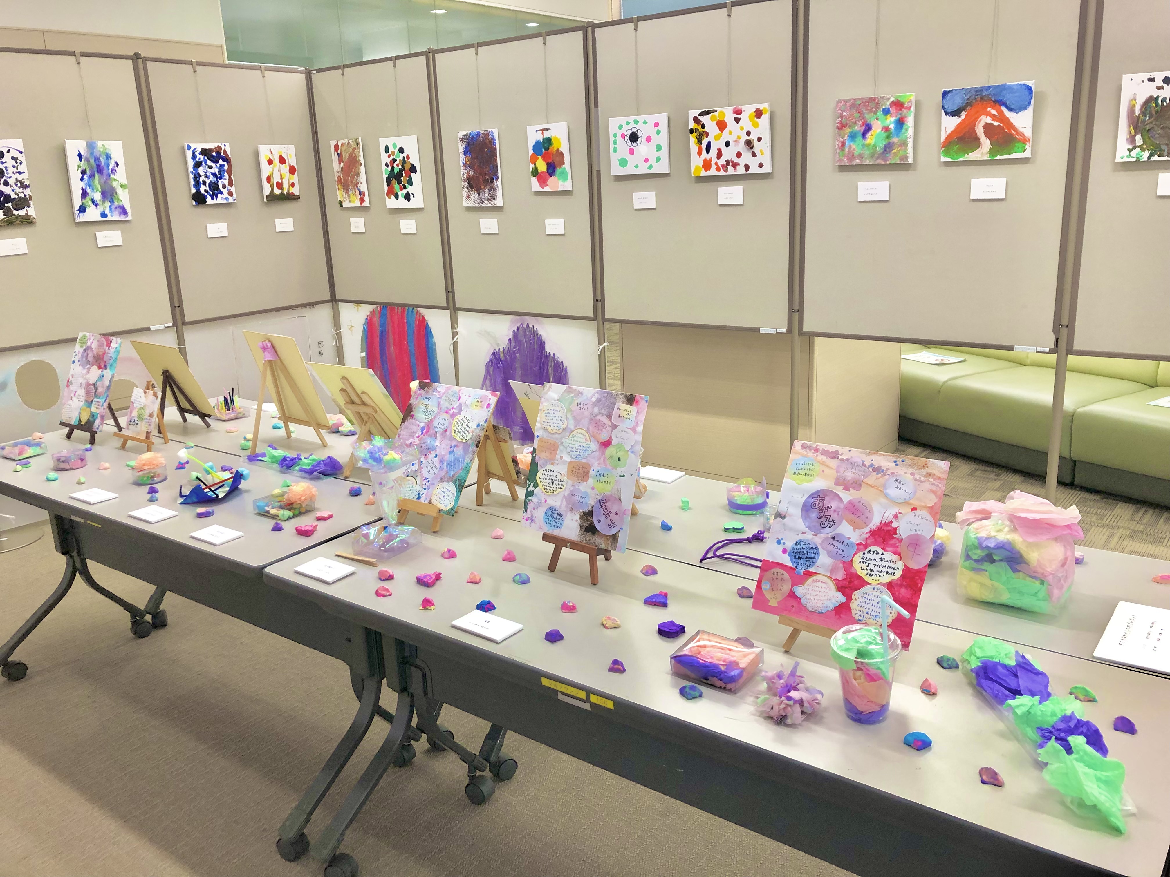 そして、アートワークセラピーが「プロセスを楽しむ」ことを大事にしていることを感じていただきたいと思い、アートしている時の子どもたちの写真も展示しました。