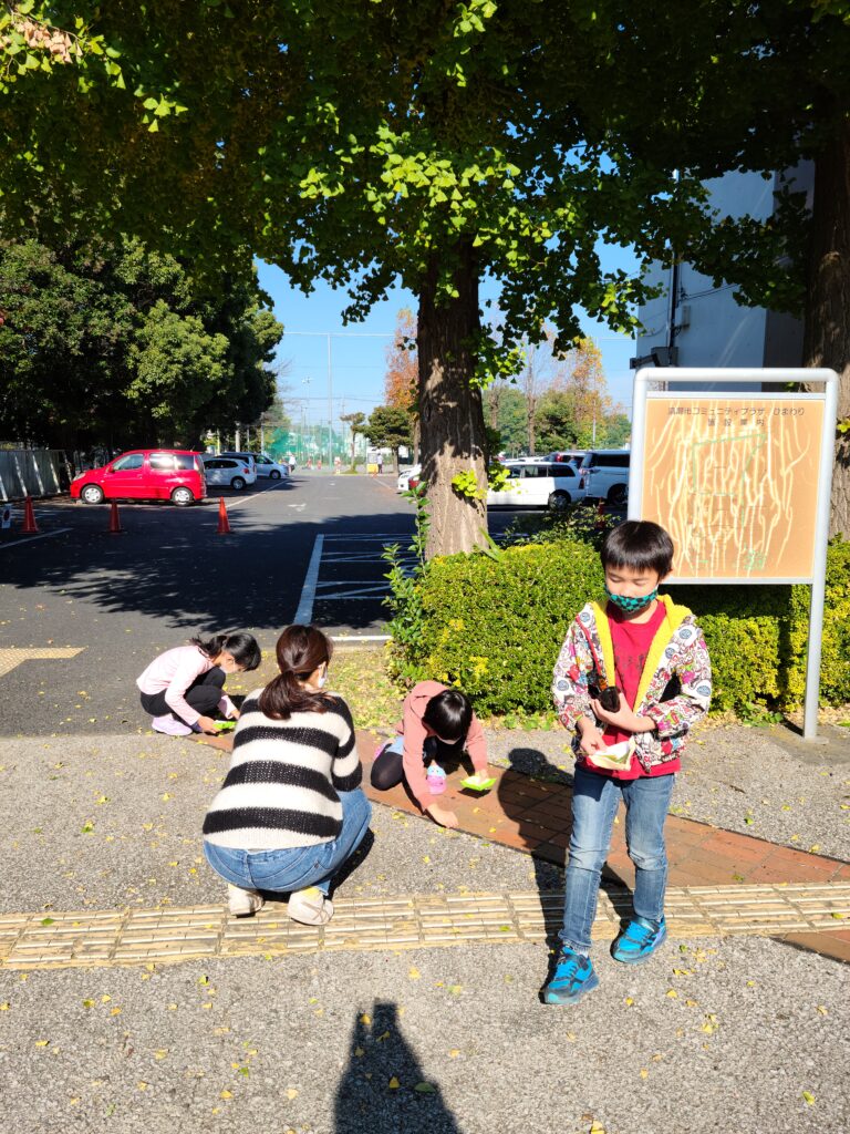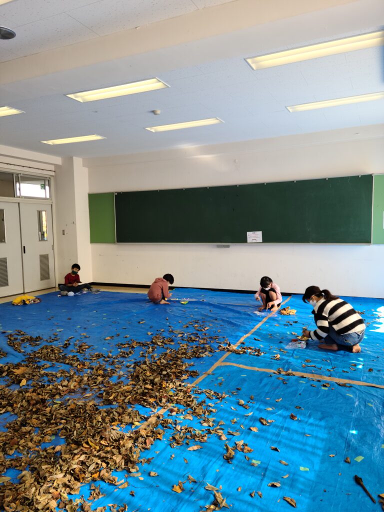 アートがひと段落すると葉っぱをまとめて落ち葉を集める子や、葉っぱを持ってまるで妖精のように飛び跳ねている子もいて、その姿がとても可愛らしかったです。一緒に過ごすだけで温かな気持ちになりました。