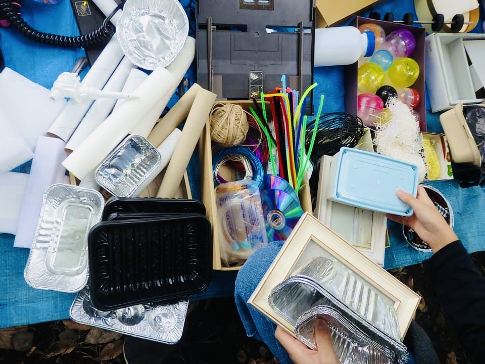 今回はSDGsにも含まれる環境への取り組みの一つ「使わなくなったものを再利用する」をテーマに、使わなくなったものを画材として準備し、新たに命を吹き込んで、人間もおばけもびっくり驚く!思わず買いたくなっちゃうものを自由に作って、おばけマーケットの準備をしていきました。