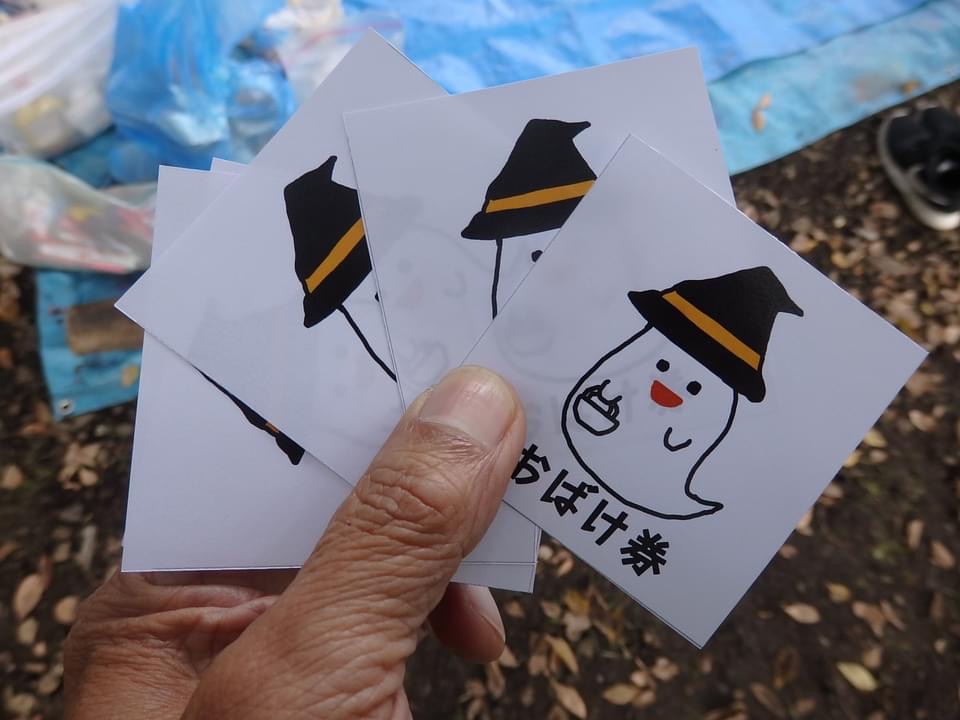 おばけマーケットの準備ができたら、お客さんたちが来てくれました。おばけマーケットだけの特別通貨「おばけ券」でお買い物開始です!