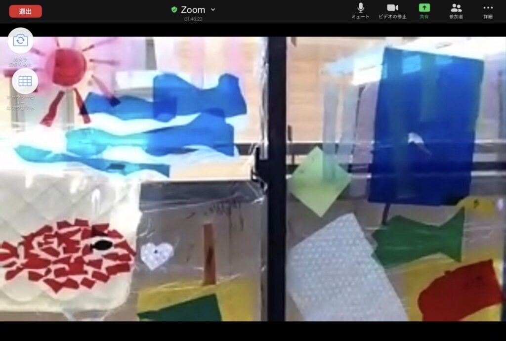 こちらは、おうちの窓を使ったアート作品です。お部屋の中が、海の世界になってしまいました!