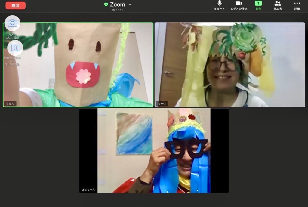 使用する画材はあらかじめご自宅にお送りして、当日はインターネットミーティングアプリzoomを使って、セラピストやほかの参加者さんたちとおしゃべりしながらアートを楽しみます。