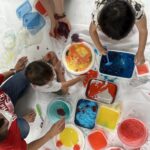 手に色水を付けて手形をつけるように色を残す子