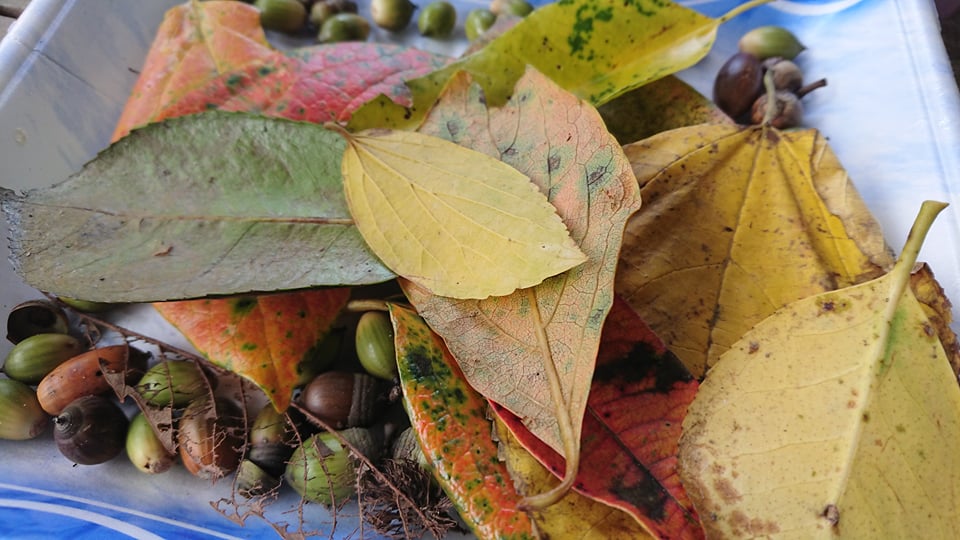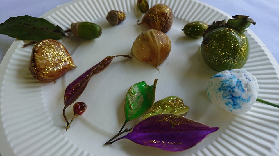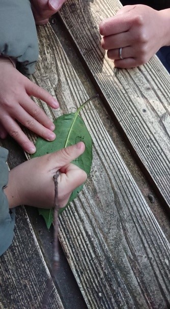 子どもたちと草花を見つけたり虫を観察したり、毎月季節ごとにかわりゆく自然の姿を見てアート表現を森でしています。