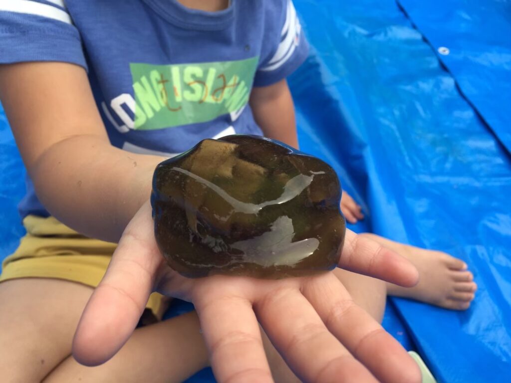 例えばそれは自分の好みの感触を知る、スライムつくりでの出来事でした。どれも形を留めていないし、同じようなネバネバの物体です。それが作り手が違うと驚くほど一つ一つ感触が違っていて、そこから優しを感じたり、元気さを感じたり、同じ材料なのにその子一人一人を感じる事が出来たのが私にとっての大きな発見でした。