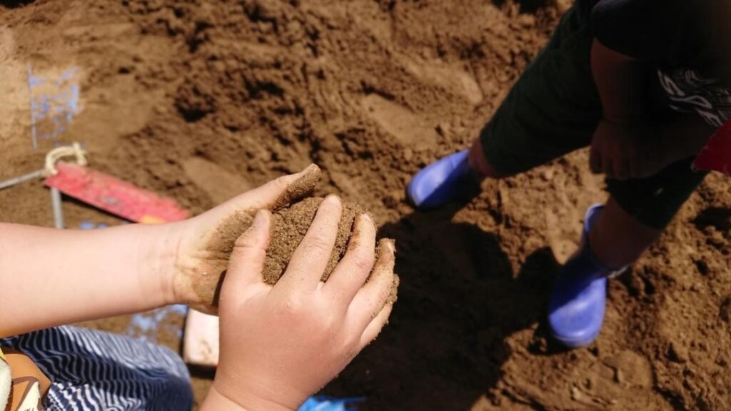 子どもたちはそんなことも知らず土を見るとつい触りたくなるみたいですね。