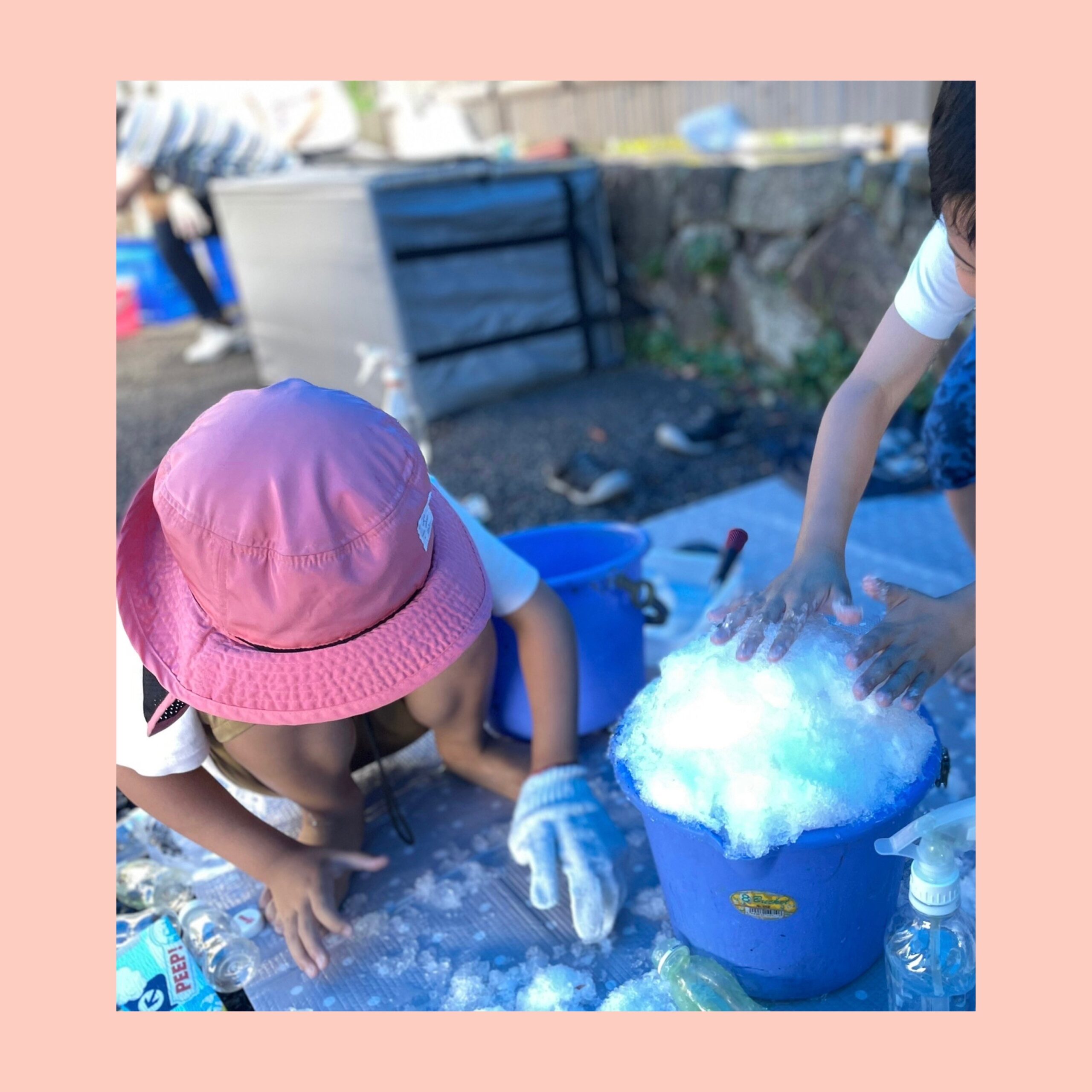 氷のような物質は時間と共に変化し、それを自分が遊んでいたもので体感できます。まったく同じものにはもう二度と戻らないこと、変化するもので遊ぶことやぼんやりと過ごすことで学ぶことがたくさんあります。