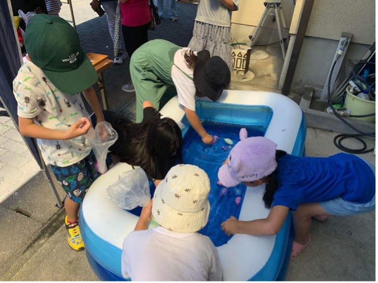 おめんづくり、かき氷、ヨーヨー釣り、手作り金魚釣り。