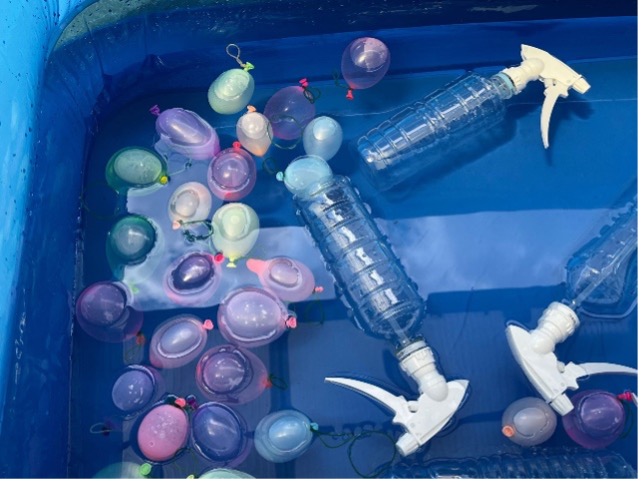 あっつい空気の中、それが、子ども達の発想で洋服べっちょぬれの水遊びへと変換され元気に外遊びしてました。
