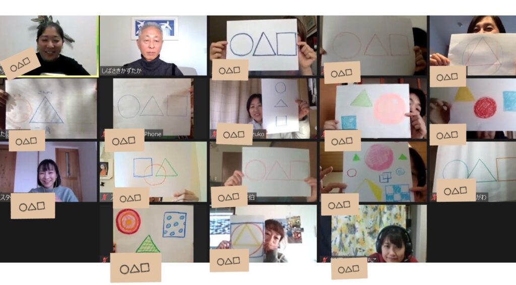 一枚目と二枚目はどちらも○△□をテーマに描いています。