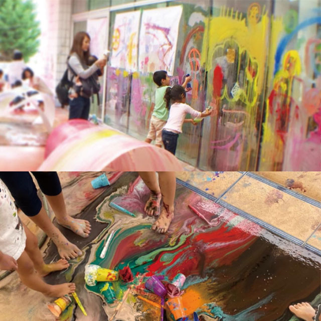 壁も床も、みんなの体も、その場のすべてがキャンバスです。